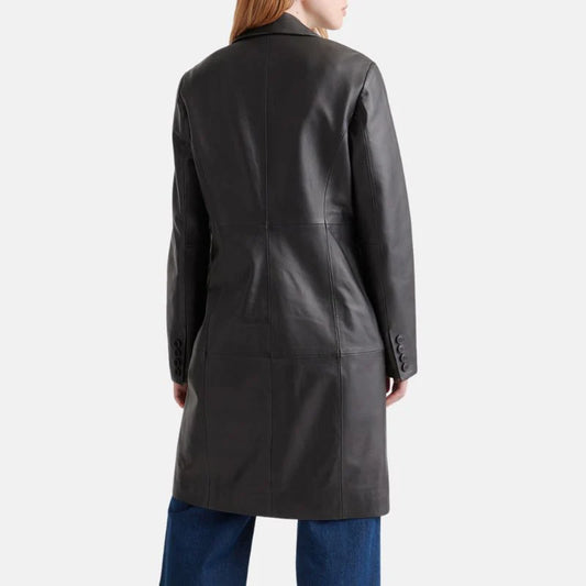 Women's Black Long Leather Trench Coat| Leather Jacket Coat Women's