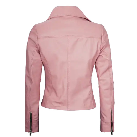 Women's Moto Style Pink Leather Jacket | Women's Leather Pink Leather Jacket