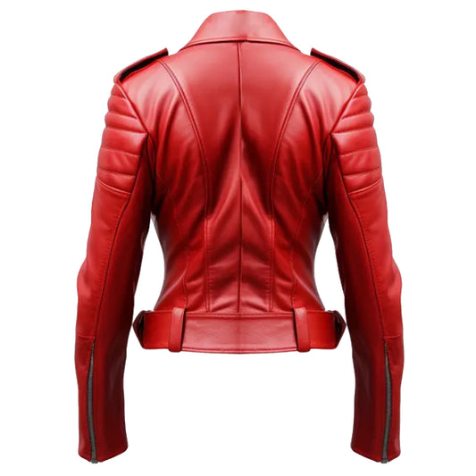 Slim fit Red Biker Leather Jacket Women's | Women's Leather Jacket