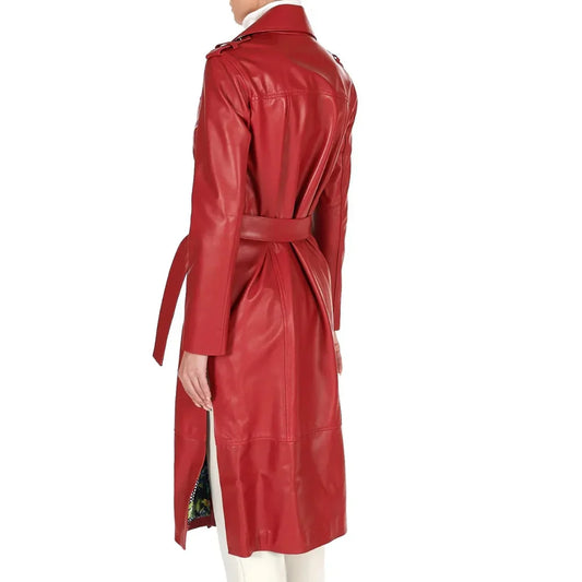 Women's Red Long Leather Coat | Leather Jacket Coat Women's Double Breasted