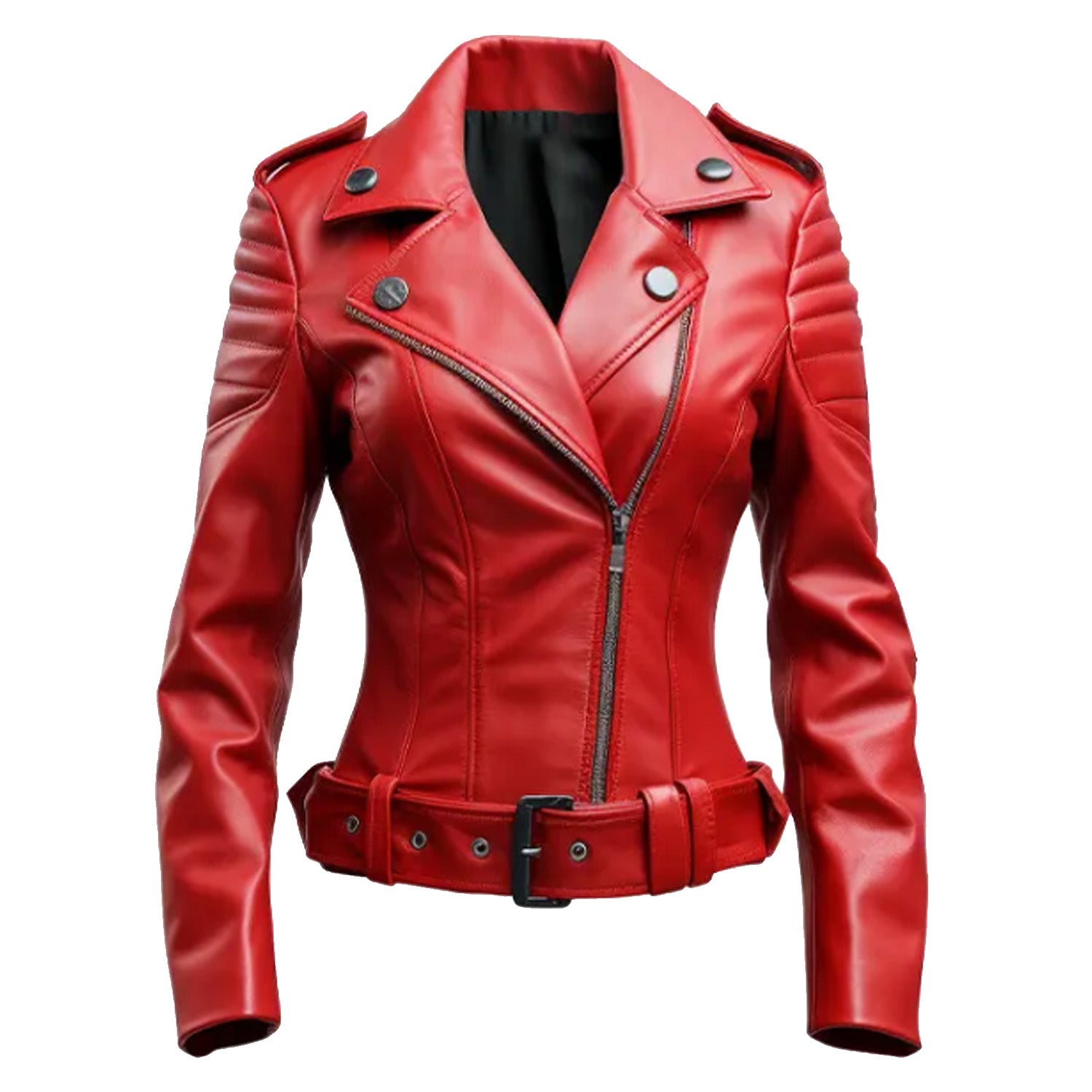 Slim fit Red Biker Leather Jacket Women's | Women's Leather Jacket